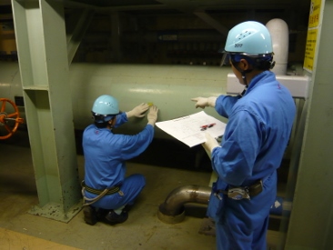 廃止措置プラントの運転管理や淡水や純水をつくるための装置等の運転・点検の他、取水口の点検・清掃、放射線管理区域内の可燃物を低減するための焼却処理、濃縮された廃液をドラム缶にアスファルトで固化充てんする業務等を行っています。