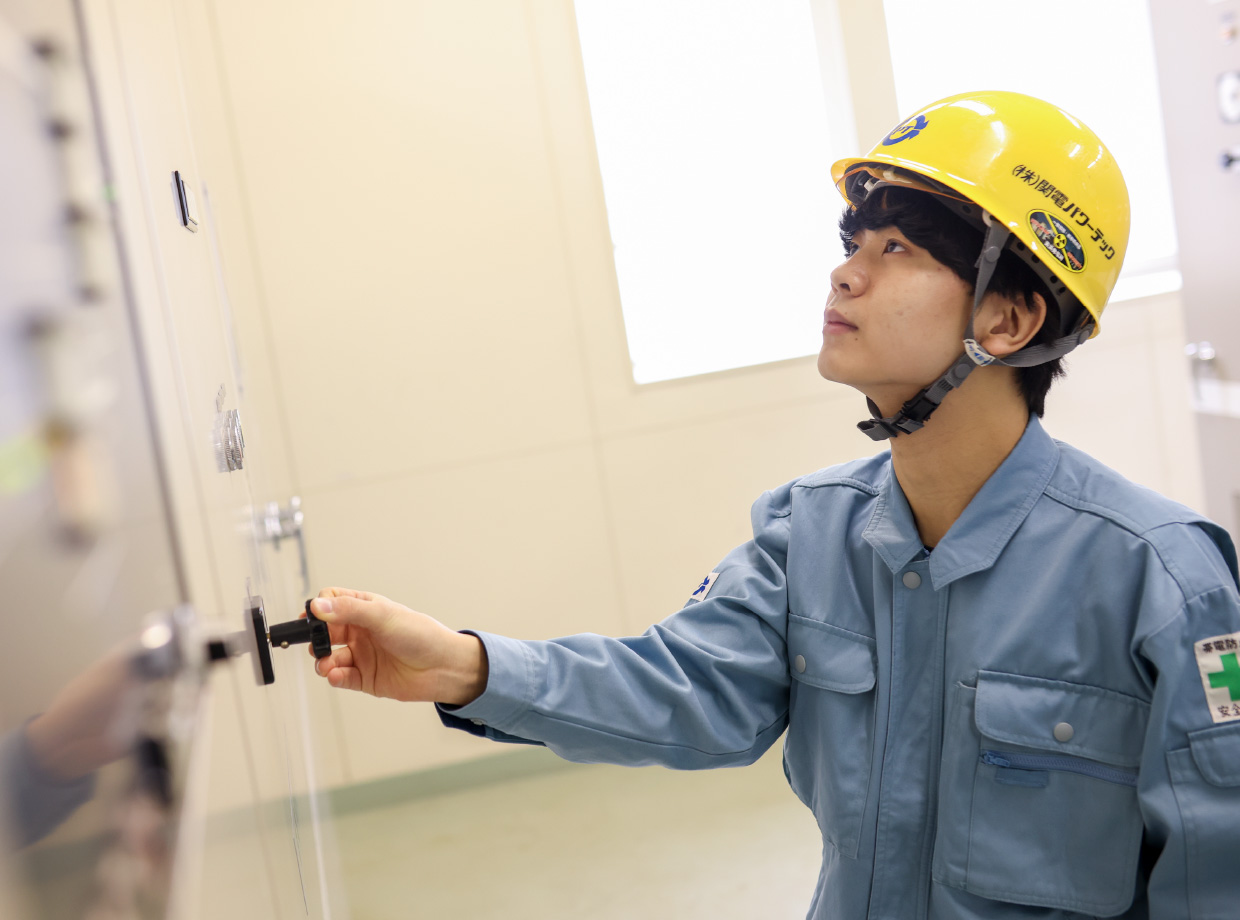 現在は美浜発電所1、2号機廃止措置運転業務を担当し、一人前の運転員になるための実習に励んでいます。廃止措置とは、運転を終えた原子力発電所から使用済燃料などを取り出すとともに、施設を解体撤去し、これに伴って発生する廃棄物の処理処分や跡地を有効利用するための作業を行うこと。「美浜発電所」は今後、約30年をかけて廃止措置を行うため、一連の作業が安全かつ計画的に進められるよう施設の点検や機器の運転操作などを行うのが私の役割です。この仕事はコミュニケーションがとても重要で、中央制御室から現場スタッフと連携することもあれば、自ら現場に赴くこともあります。どんな状況でも確実に連携するためには、いつ、何をするのかを正確に伝える情報共有が大切だと実感しています。