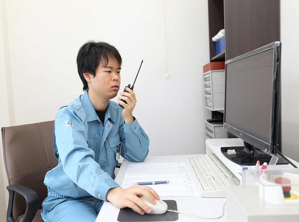原子力発電所で発生した低レベル放射性廃棄物を埋設処分するための廃棄体検査、搬出を担当しています。主な仕事である廃棄体検査では、検査装置の制御やコンテナの放射線測定などさまざまなポジションに携わります。検査は数ヶ月かかることもある長丁場ですが、無事に搬出をやり遂げたときの達成感はひとしお。チーム全員で喜び合い、時には打ち上げ会を楽しむこともあります。