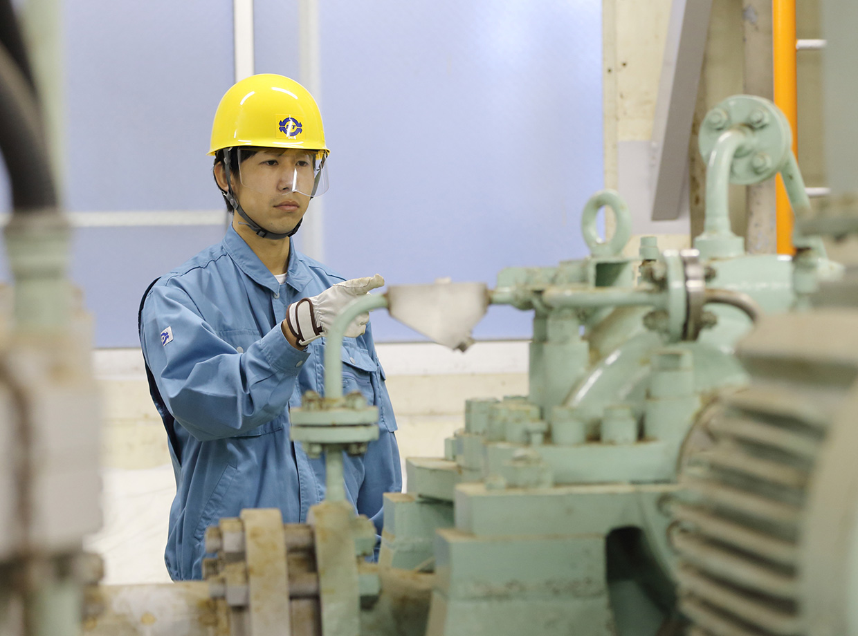 現在は放射性廃棄物の処理に関わるアスファルト固化施設の運転責任者認定を目指し、実習を行っています。まだ始まったばかりですが、管理する機械の操作や指示の出し方などを現場で学び、正確で確実な意思決定のできる運転責任者になるべく知識を高めています。発電所の仕事は操作の一つひとつが非常に重要です。これからも先輩方とタッグを組み、安全第一で仕事に取り組みたいと思っています。